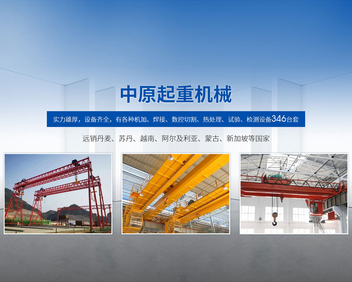 新鄉(xiāng)市中原起重機械有限公司成立于2000年,地處中原,輻射全國28個省市自治區(qū),設(shè)外埠經(jīng)銷處、辦事處268個。產(chǎn)品行銷工礦、建材、化工、冶金、電力、交通、鐵路、油田、港口等各個行業(yè)。遠銷丹麥、蘇丹、越南、阿爾及利亞、蒙古、新加坡等國家。  公司實力雄厚,設(shè)備齊全,有各種機加、焊接、數(shù)控切割、熱處理、試驗、檢測設(shè)備7臺;有機加工、熱處理、單、雙梁橋門機生產(chǎn)、檢測、安裝等9個車間,研究中心、運輸公司、安裝維修服務(wù)公司等機構(gòu),?  主要產(chǎn)品有:LD型1~20噸電動單梁起重機系列產(chǎn)品;5~600噸通用橋式、門式、冶金、上旋轉(zhuǎn)下旋轉(zhuǎn)電磁吊、絕緣、抓斗、防爆起重機系列產(chǎn)品;LH3~100噸葫蘆雙梁系列產(chǎn)品;MH5~32噸葫蘆門式系列產(chǎn)品;0.5~40噸CD1、MD1鋼絲繩電葫蘆系列產(chǎn)品;HS1型0.5~20噸手動葫蘆系列產(chǎn)品;0.5~10噸環(huán)鏈電動葫蘆系列;0.5~40噸彎道電動葫蘆系列產(chǎn)品;裝卸橋、造船門機、架橋機、鑄造吊和水電大噸位起重機系列產(chǎn)品?! 」窘⒘藦娪辛Φ馁|(zhì)量保證體系和生產(chǎn)過程的質(zhì)量控制系統(tǒng),嚴格執(zhí)行國家設(shè)計、生產(chǎn)標(biāo)準,有嚴格的生產(chǎn)工藝過程和標(biāo)準,嚴格的檢驗、檢測標(biāo)準和手段。